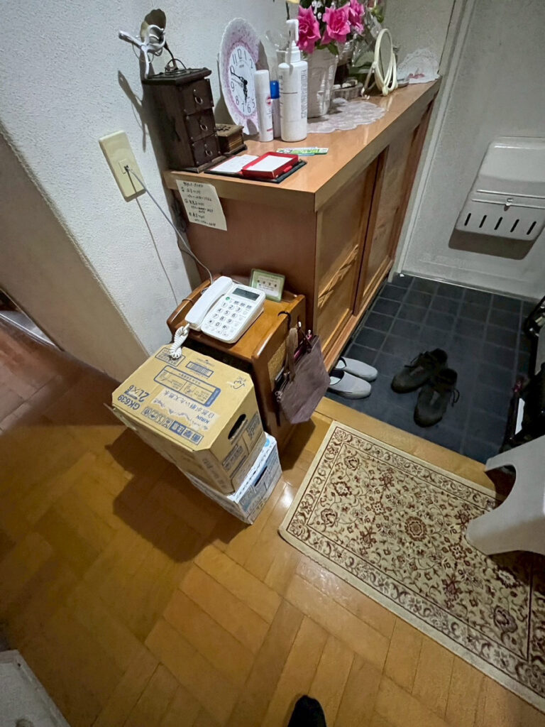 今回も玄関まわりに箱物や小家具があったため、搬出の妨げにならないよう整えながら作業を進めました。